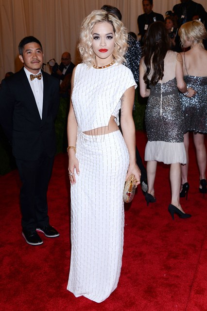 Rita Ora in Thakoon. Exposed threads anda bare midriff; the recipe for punk.